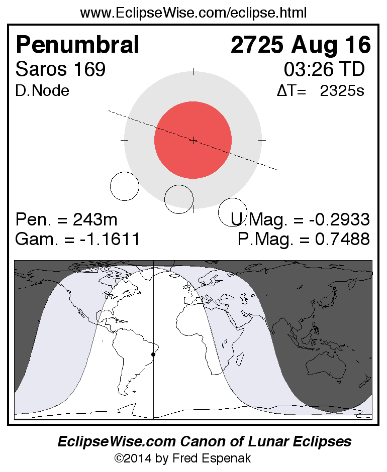 The penumbral lunar eclipse of 2725 Aug 16 is preceded two weeks earlier by a total solar eclipse on 2725 Jul 31.