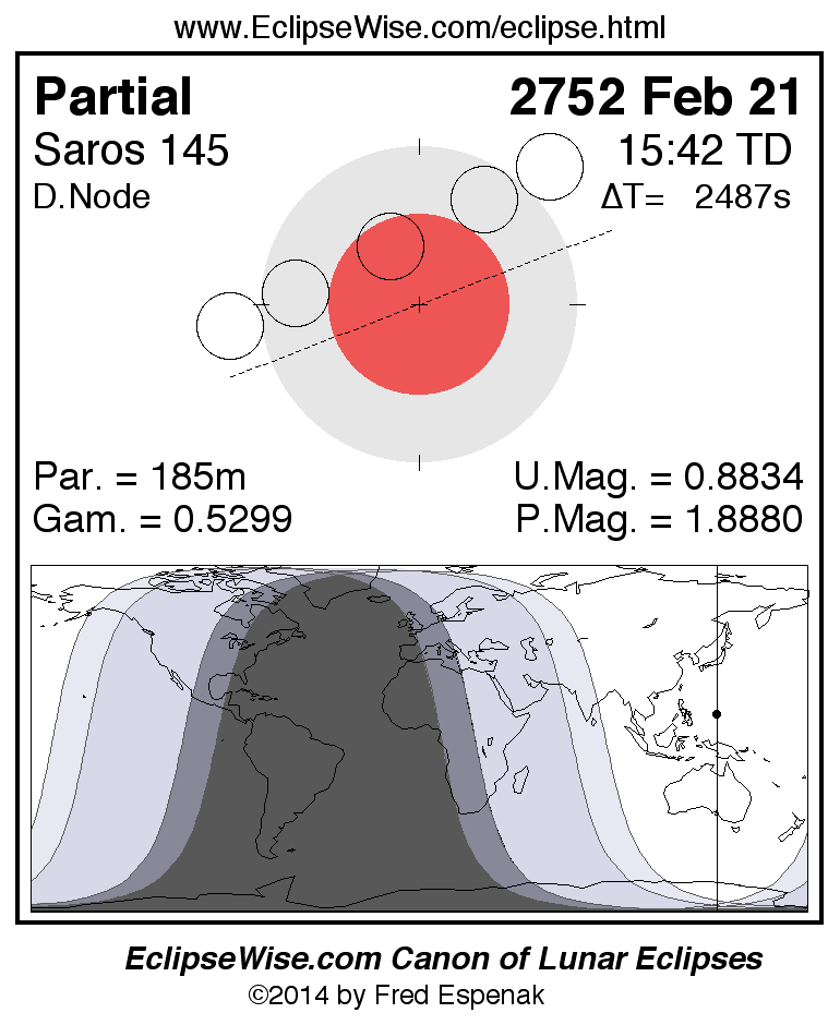The instant of greatest eclipse takes place on 2752 Feb 21 at 15:42:12 TD (15:00:46 UT1).