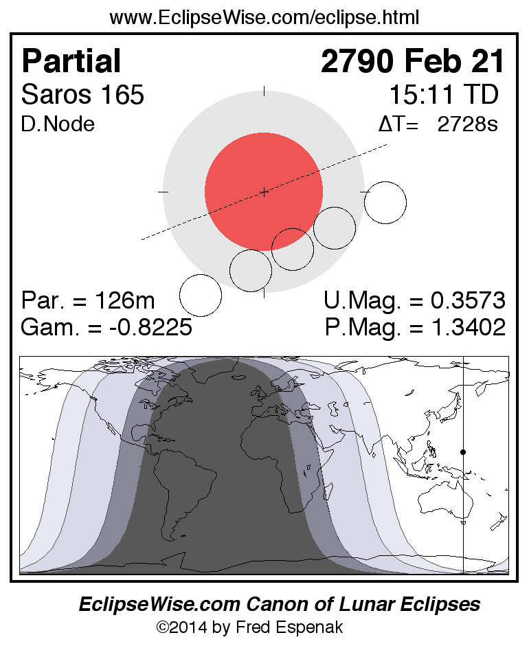 The instant of greatest eclipse takes place on 2790 Feb 21 at 15:10:30 TD (14:25:02 UT1).