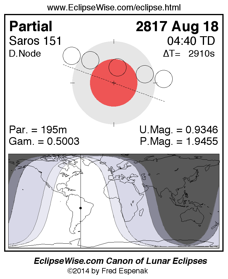 The partial lunar eclipse of 2817 Aug 18 is followed two weeks later by a total solar eclipse on 2817 Sep 02.