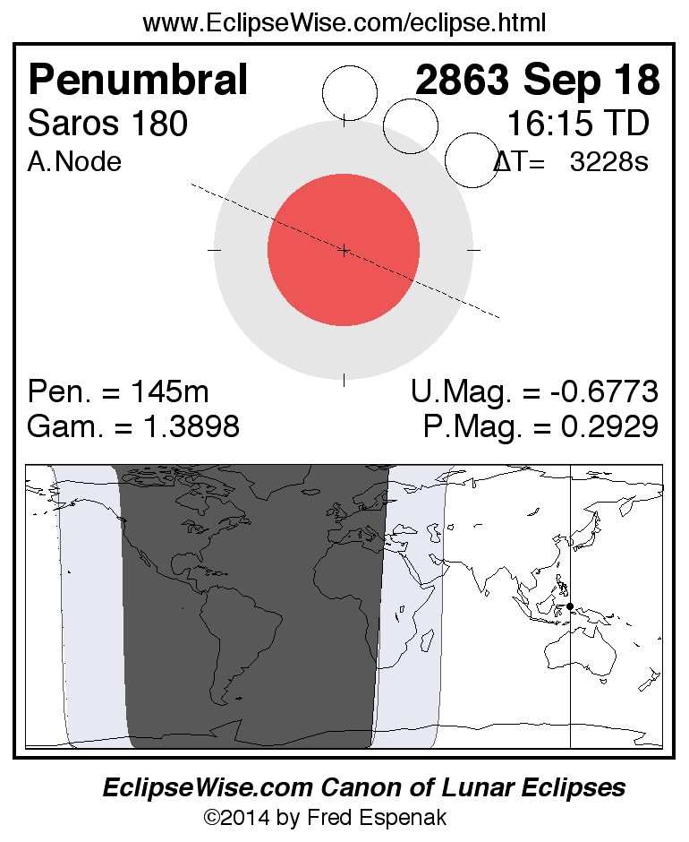 Another lunar eclipse occurs one synodic month before the 2863 Sep 18 eclipse. It is the penumbral lunar eclipse of 2863 Aug 20.