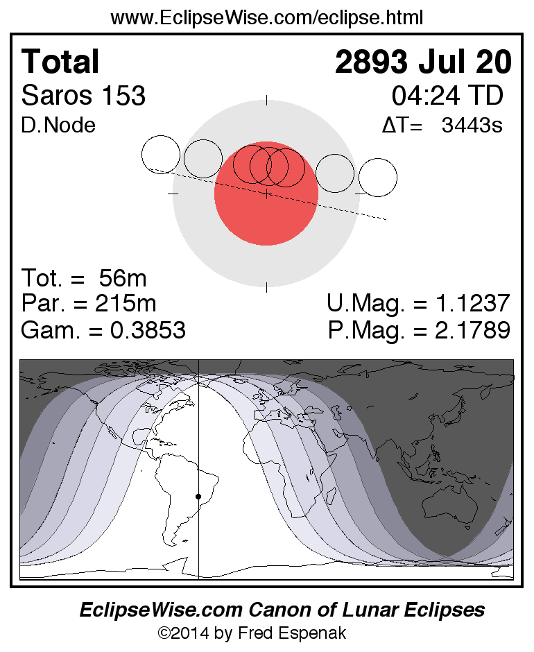 The instant of greatest eclipse takes place on 2893 Jul 20 at 04:23:37 TD (03:26:15 UT1).