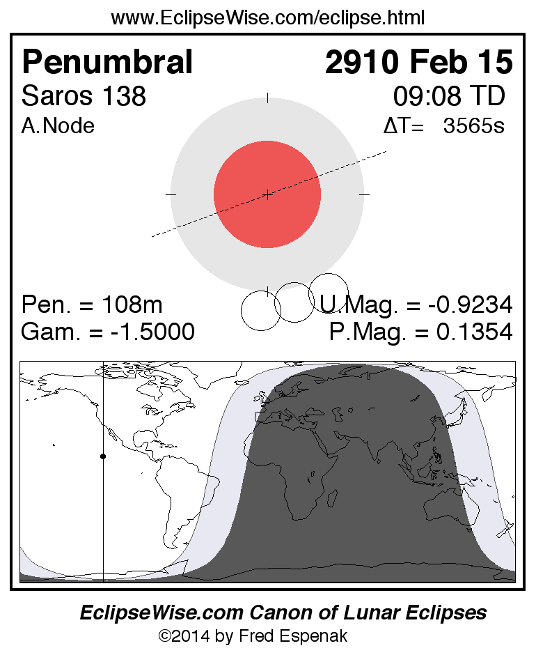 Penumbral Lunar Eclipse of 2910 Feb 15