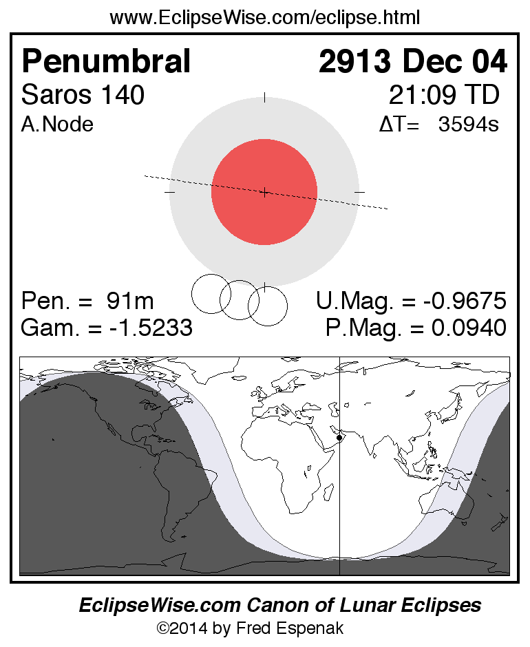 The penumbral lunar eclipse of 2913 Dec 04 is followed two weeks later by a annular solar eclipse on 2913 Dec 18.