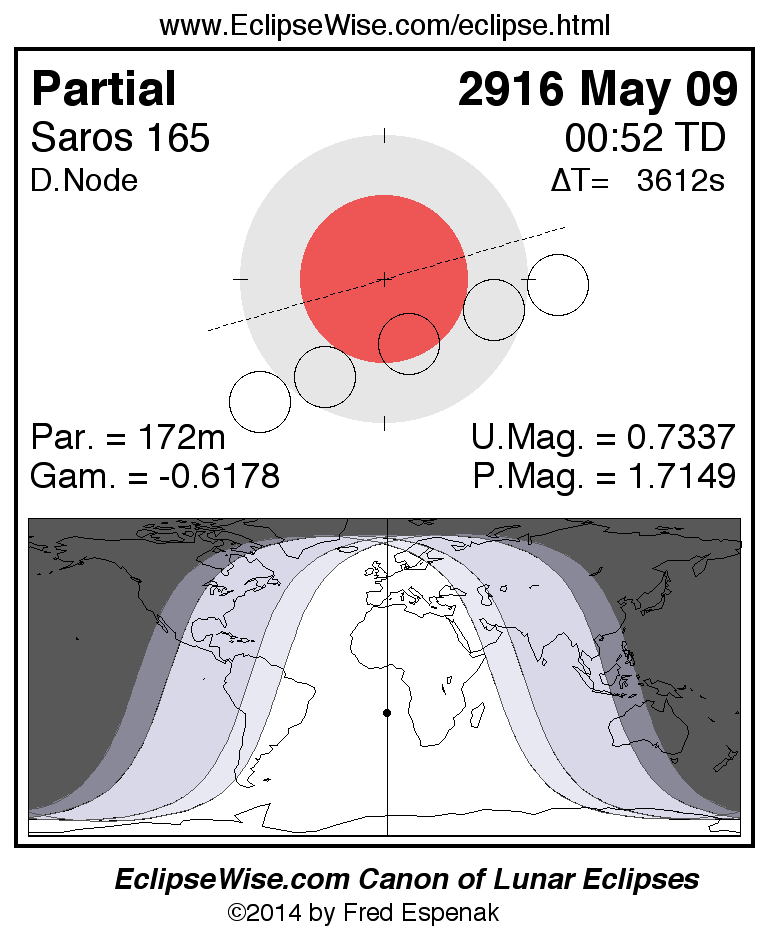 The instant of greatest eclipse takes place on 2916 May 09 at 00:51:34 TD (23:51:23 UT1).