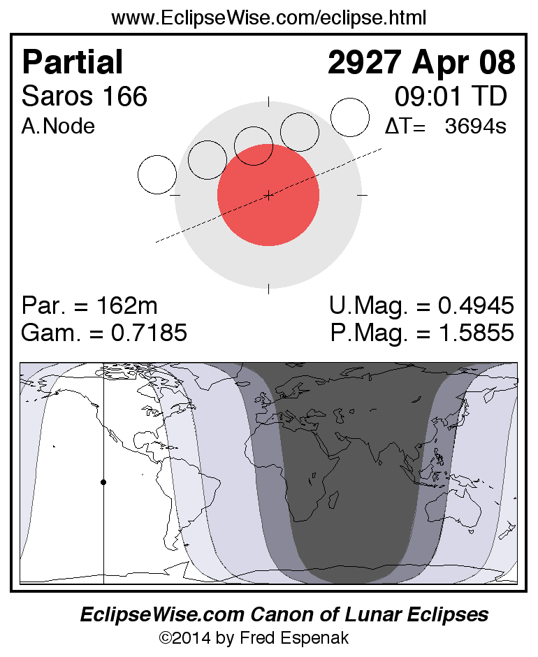 The instant of greatest eclipse takes place on 2927 Apr 08 at 09:00:52 TD (07:59:18 UT1).