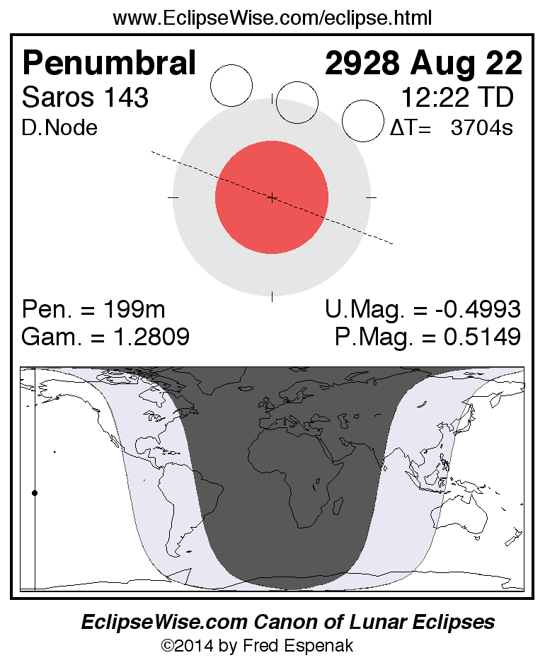 Penumbral Lunar Eclipse of 2928 Aug 22