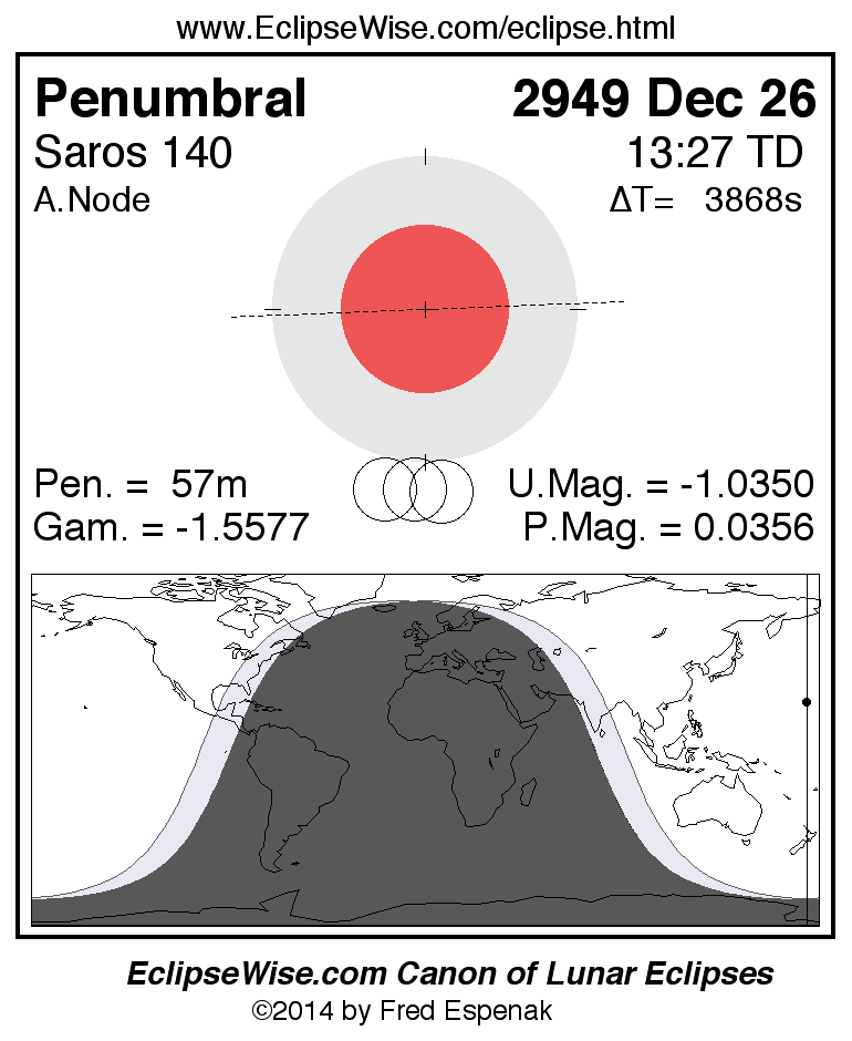 Penumbral Lunar Eclipse of 2949 Dec 26