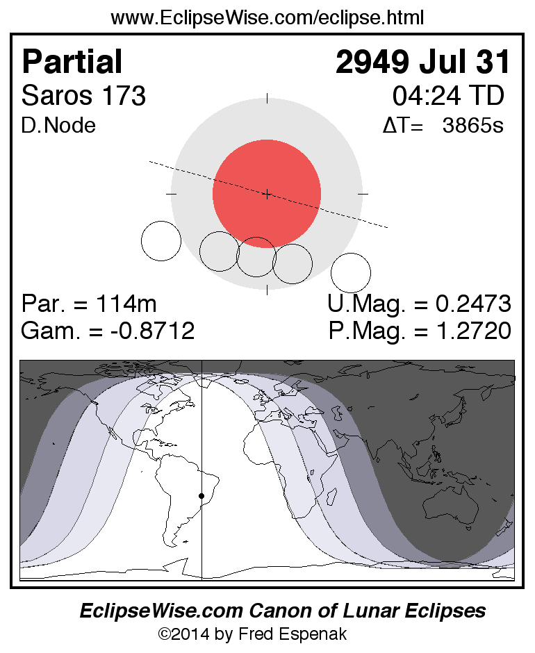 The partial lunar eclipse of 2949 Jul 31 is preceded two weeks earlier by a total solar eclipse on 2949 Jul 17.