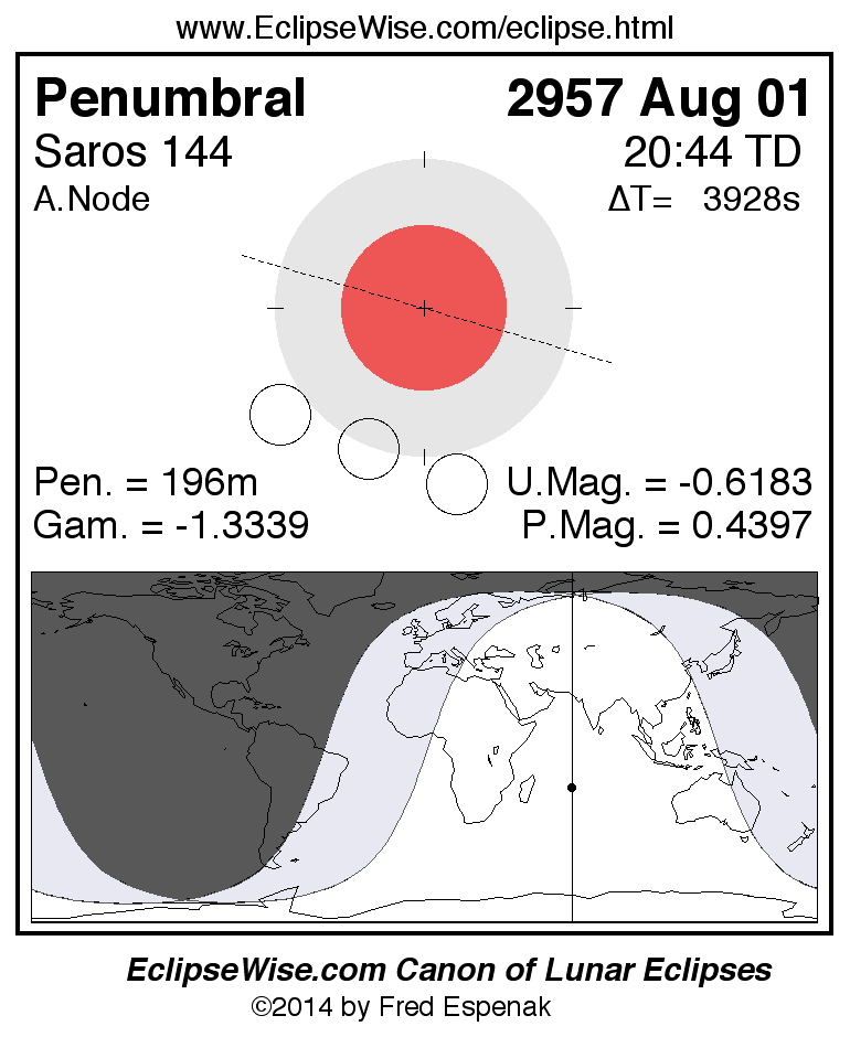 Penumbral Lunar Eclipse of 2957 Aug 01