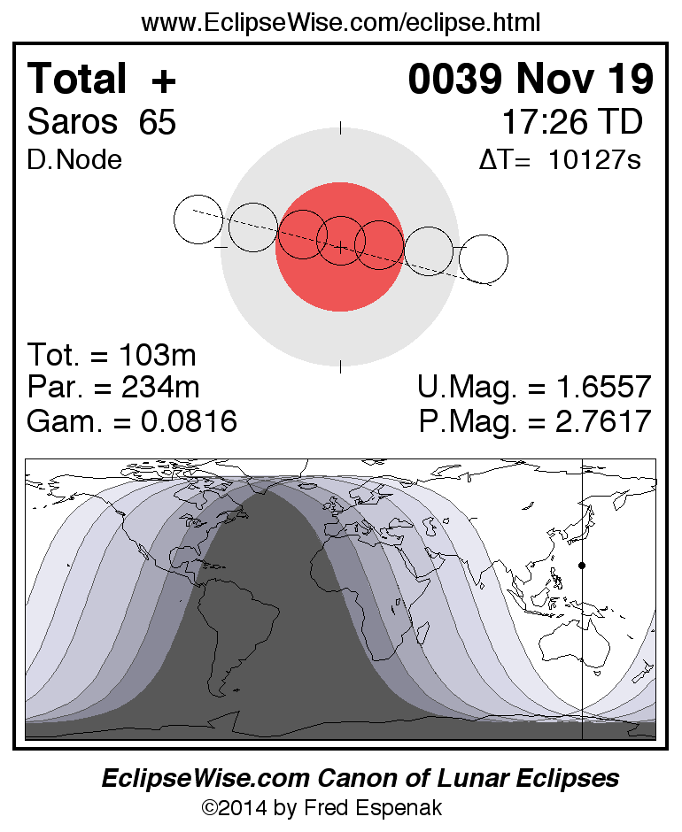 For more information on this series see Statistics for Lunar Eclipses of Saros 65 .