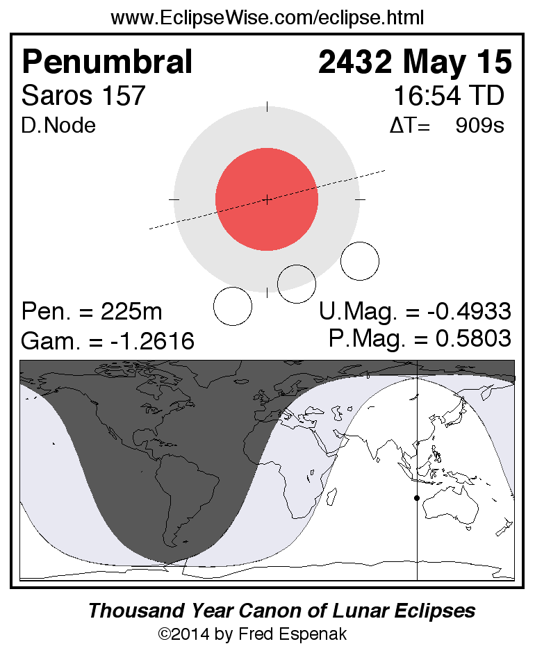 For more information on this series see Statistics for Lunar Eclipses of Saros 157 .