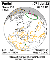 | 1971 Jul 22 | 09:31:55 | Partial | 116 | 0.069 | - | ne Asia, n Alaska |