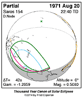 | 1971 Aug 20 | 22:39:31 | Partial | 154 | 0.508 | - | e Australia, New Zealand, s Pacific |