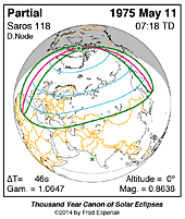 | 1975 May 11 | 07:17:33 | Partial | 118 | 0.864 | - | Greenland, Europe, n Africa, n Asia, |