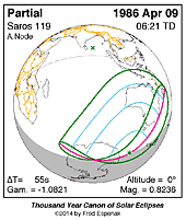 | 1986 Apr 09 | 06:21:22 | Partial | 119 | 0.824 | - | East Indies, Australia, Antarctica |