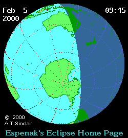 - Animated Map: Partial Solar Eclipse of 2000 Feb 05 - animated map of the Moon's shadows across Earth