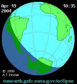 - Animated Map: Partial Solar Eclipse of 2004 Apr 19 - animated map of the Moon's shadows across Earth
