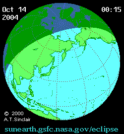 - Animated Map: Partial Solar Eclipse of 2004 Oct 14 - animated map of the Moon's shadows across Earth