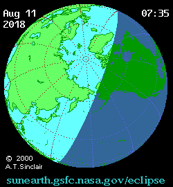 - Animated Map: Partial Solar Eclipse of 2018 Aug 11 - animated map of the Moon's shadows across Earth