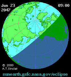 - Animated Map: Partial Solar Eclipse of 2047 Jun 23 - animated map of the Moon's shadows across Earth