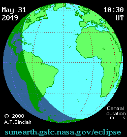 - Animated Map: Annular Solar Eclipse of 2049 May 31 - animated map of the Moon's shadows across Earth