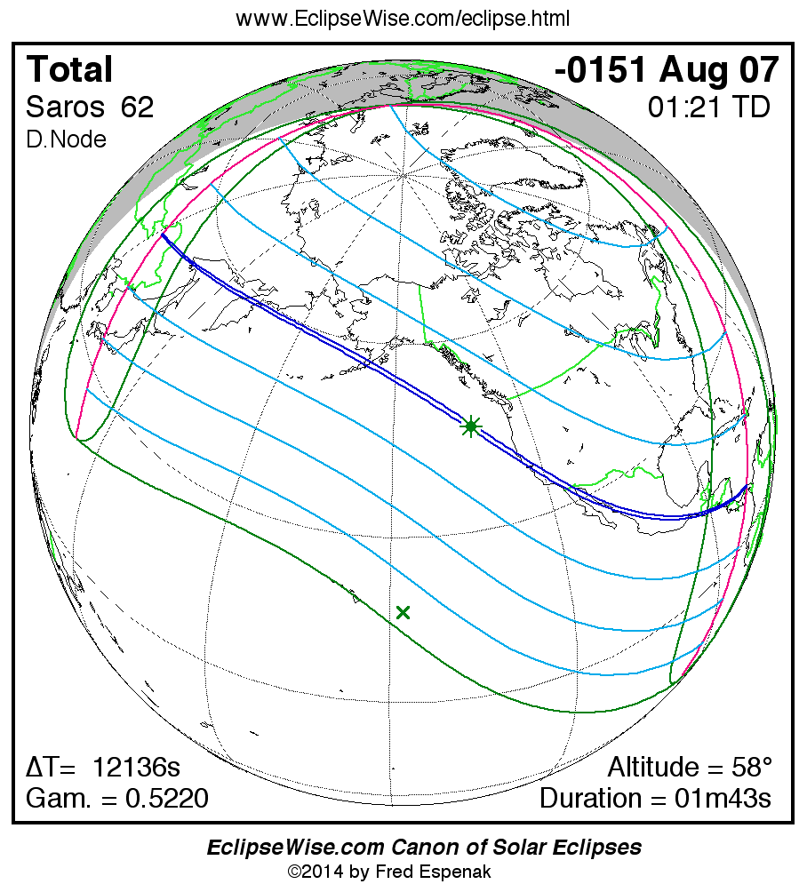 Total Solar Eclipse of -0151 Aug 08 (0152 Aug 08 BCE)