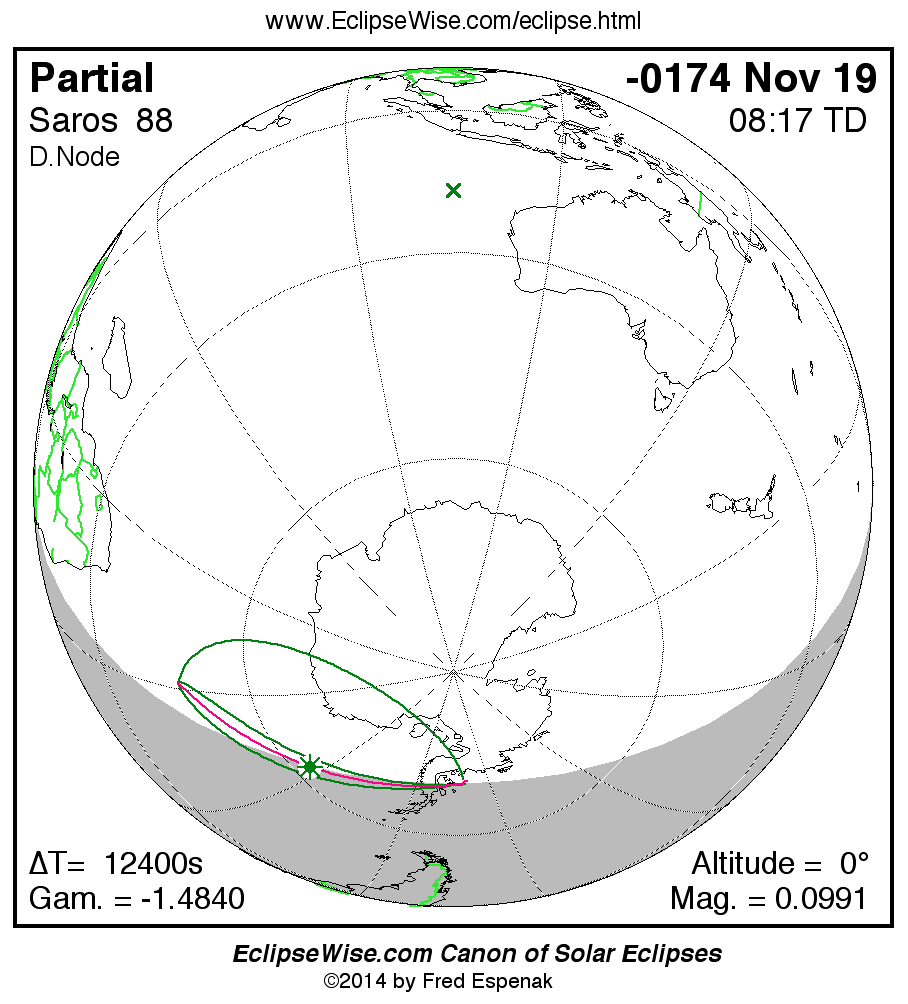 Another solar eclipse occurs one synodic month before the -0174 Nov 19 eclipse. It is the partial solar eclipse of -0174 Oct 20.