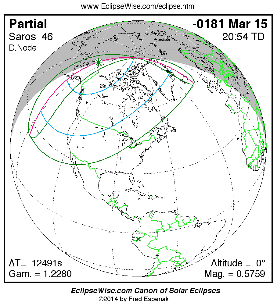 The instant of greatest eclipse takes place on -0181 Mar 15 at 20:54:27 TD (17:26:18 UT1).