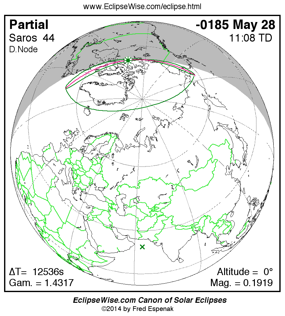The instant of greatest eclipse takes place on -0185 May 28 at 11:08:18 TD (07:39:24 UT1).