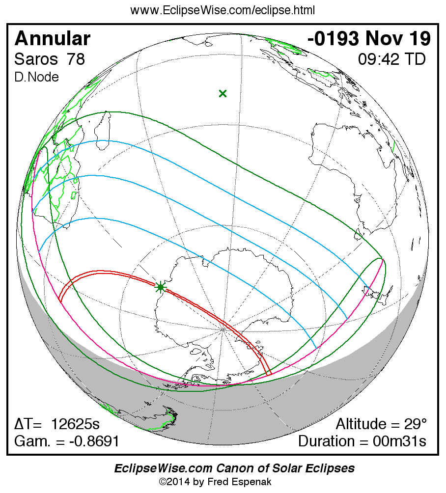 The instant of greatest eclipse takes place on -0193 Nov 19 at 09:41:35 TD (06:11:11 UT1).