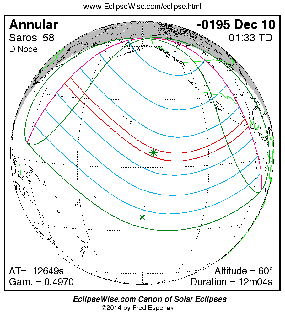 - Path Table: Annular Solar Eclipse of -0195 Dec 11 - coordinates of the central line and path limits