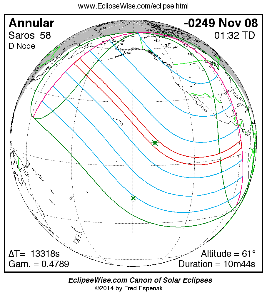 - Path Table: Annular Solar Eclipse of -0249 Nov 09 - coordinates of the central line and path limits