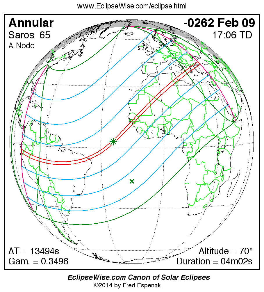 The instant of greatest eclipse takes place on -0262 Feb 09 at 17:06:25 TD (13:21:32 UT1).