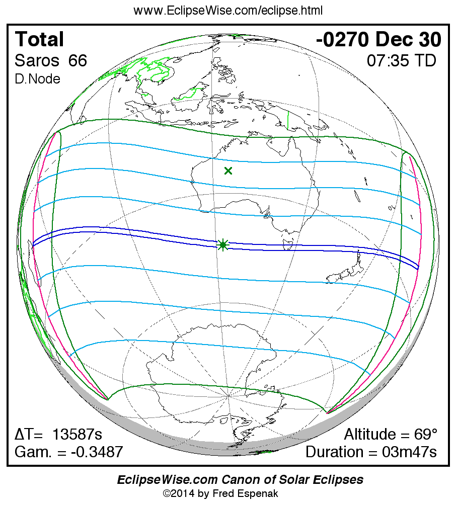 The instant of greatest eclipse takes place on -0270 Dec 30 at 07:35:12 TD (03:48:47 UT1).