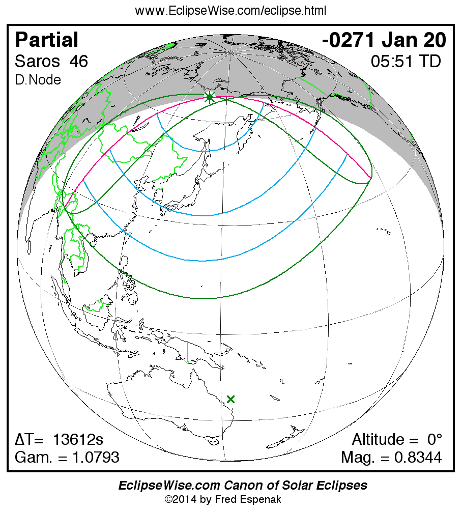 The instant of greatest eclipse takes place on -0271 Jan 20 at 05:51:22 TD (02:04:31 UT1).