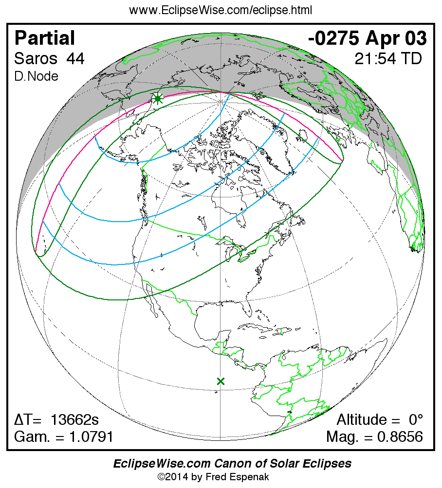 The instant of greatest eclipse takes place on -0275 Apr 03 at 21:54:01 TD (18:06:21 UT1).