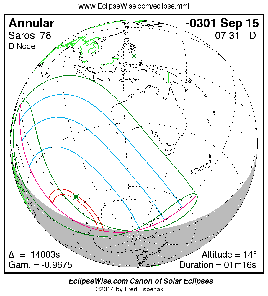 Annular Solar Eclipse of -0301 Sep 15 (0302 Sep 15 BCE)