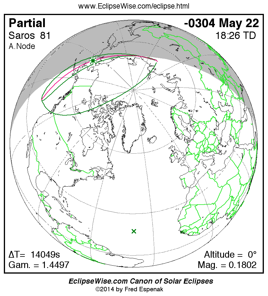 The instant of greatest eclipse takes place on -0304 May 22 at 18:26:14 TD (14:32:07 UT1).