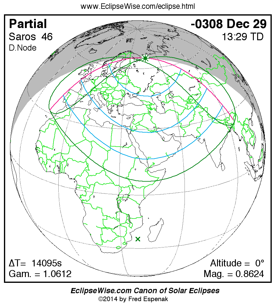 The instant of greatest eclipse takes place on -0308 Dec 29 at 13:28:55 TD (09:34:02 UT1).