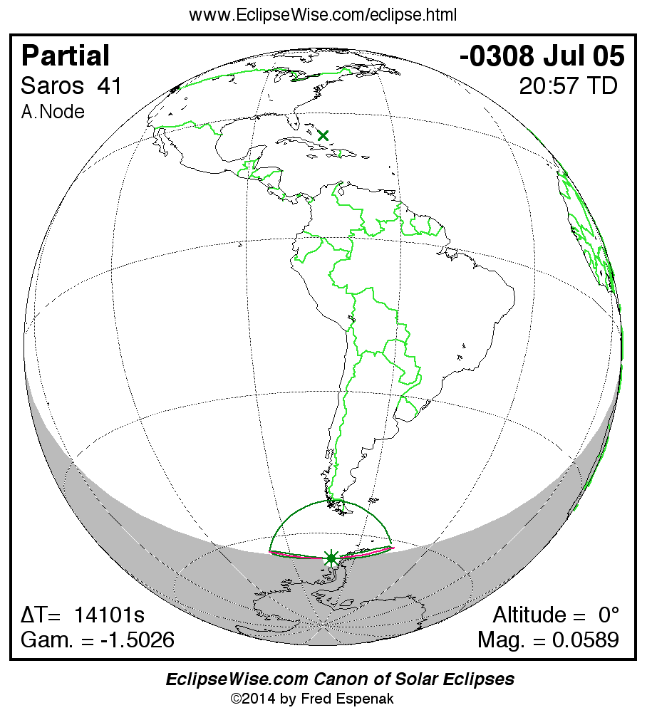 - Orthographic Map: Partial Solar Eclipse of -0308 Jul 05 - global map of eclipse visibility