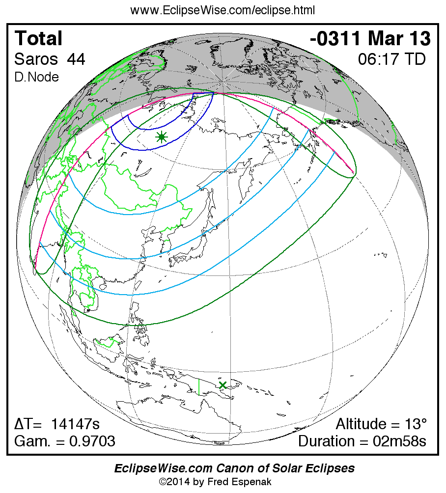 Total Solar Eclipse of -0311 Mar 13 (0312 Mar 13 BCE)