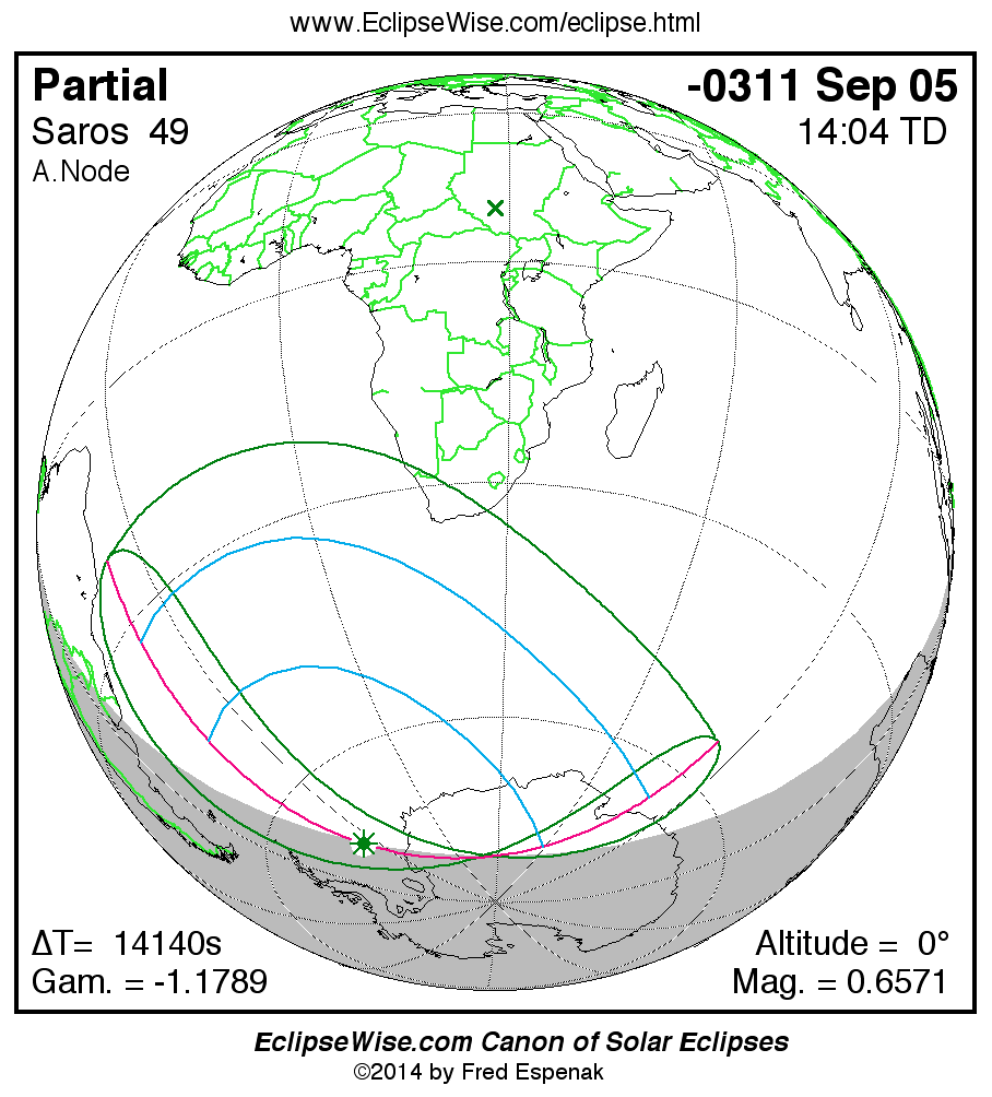 The instant of greatest eclipse takes place on -0311 Sep 05 at 14:03:51 TD (10:08:13 UT1).