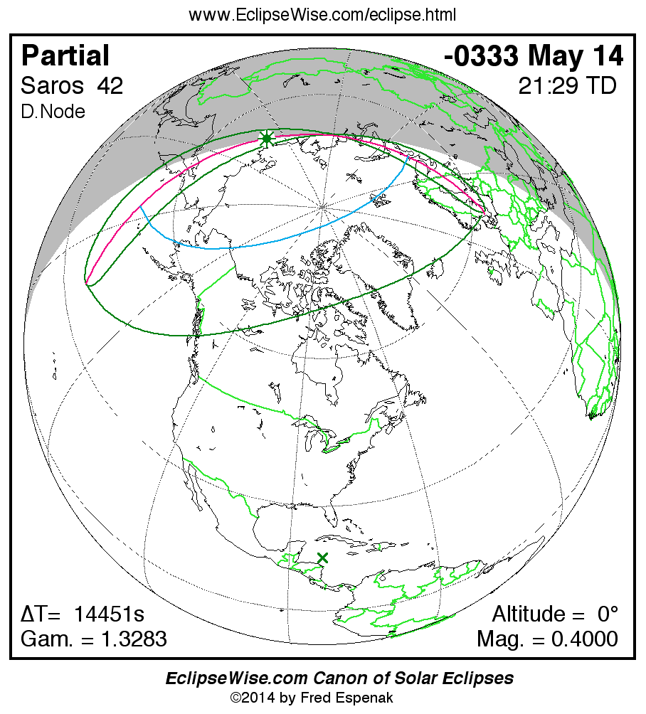 The instant of greatest eclipse takes place on -0333 May 14 at 21:29:29 TD (17:28:40 UT1).
