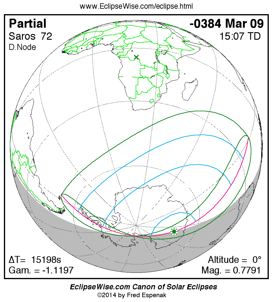 The instant of greatest eclipse takes place on -0384 Mar 09 at 15:07:25 TD (10:54:09 UT1).