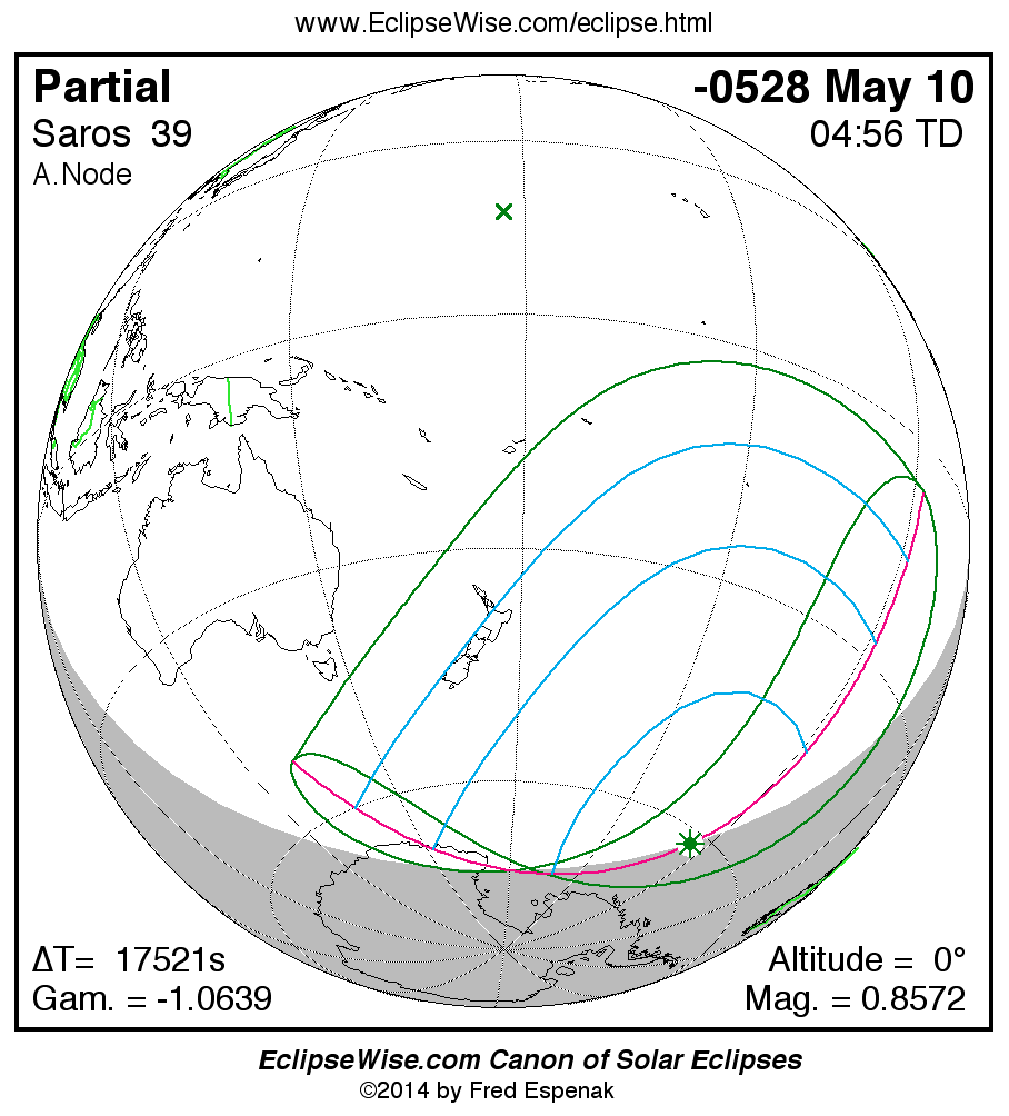 The instant of greatest eclipse takes place on -0528 May 10 at 04:55:38 TD (00:03:39 UT1).