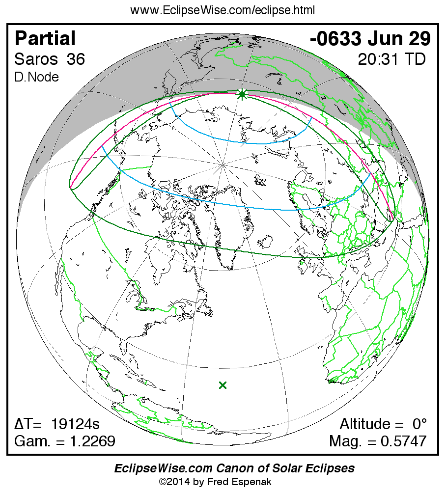 The instant of greatest eclipse takes place on -0633 Jun 29 at 20:31:11 TD (15:12:29 UT1).