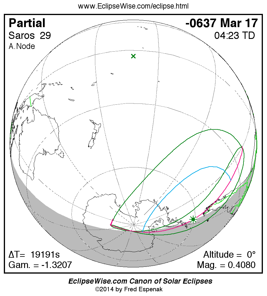 The instant of greatest eclipse takes place on -0637 Mar 18 at 04:22:44 TD (23:02:56 UT1).