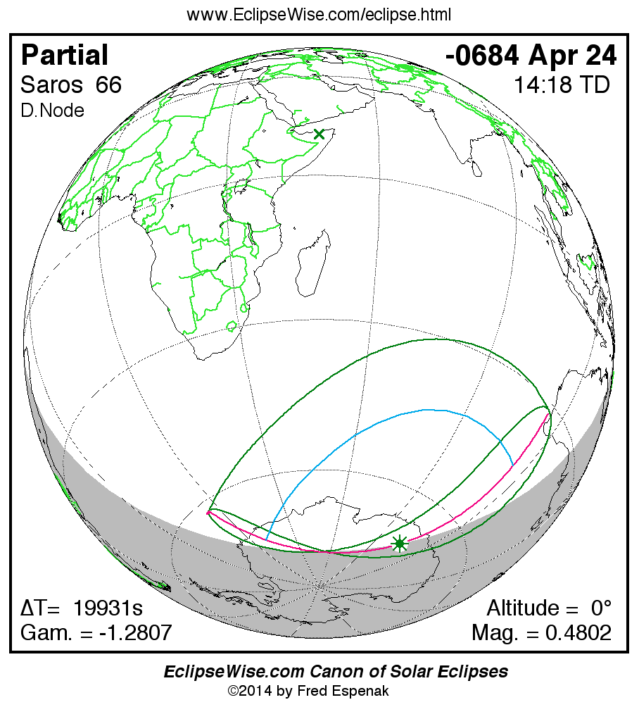 The instant of greatest eclipse takes place on -0684 Apr 24 at 14:17:40 TD (08:45:31 UT1).