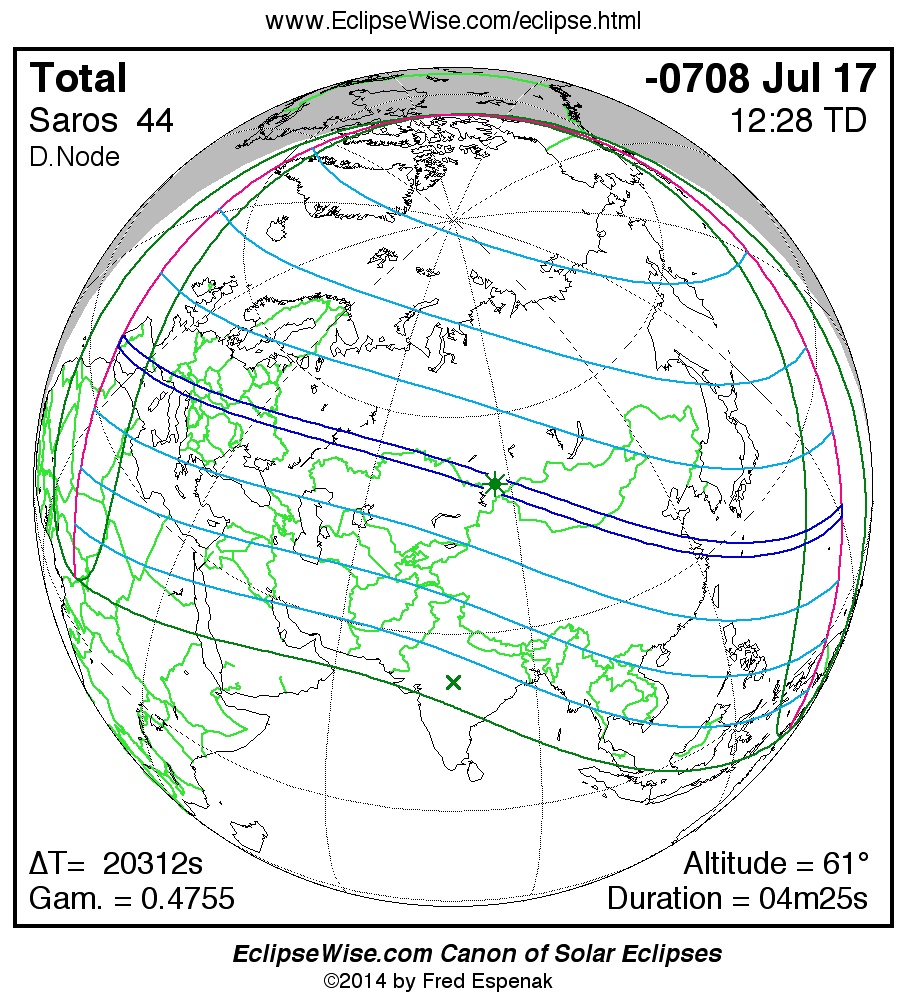 Total Solar Eclipse of -0708 Jul 17 (0709 Jul 17 BCE)